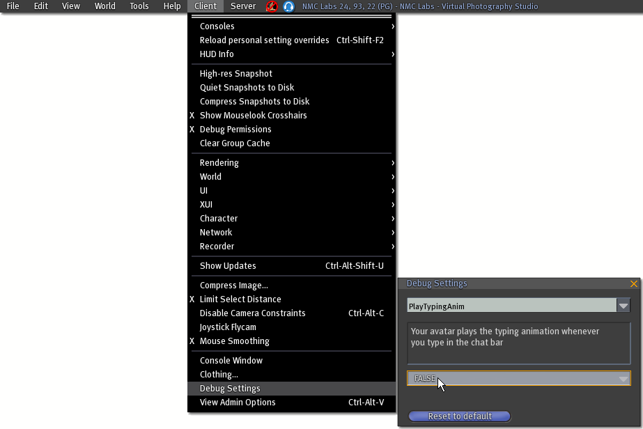 | 09:24, 23 August 2007 | Client menu - Debug Settings.png (file) | 63 KB | 1 | ||
