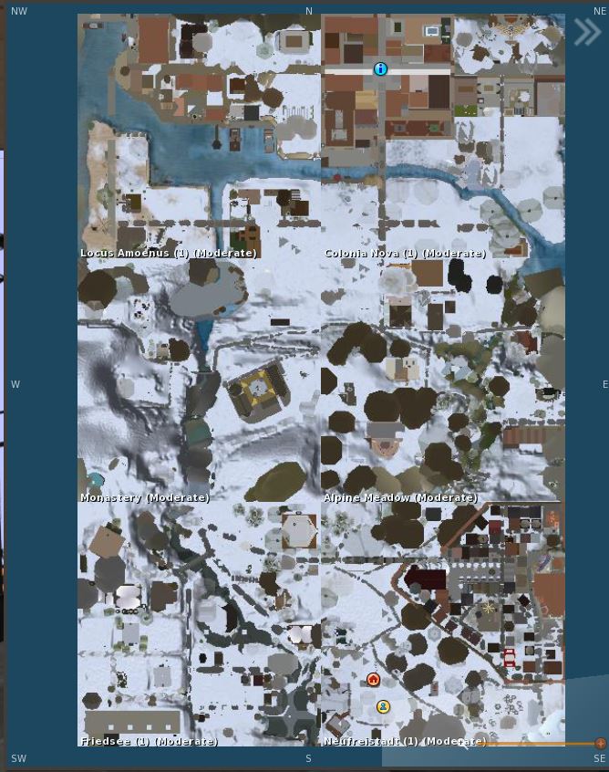 The 6 regions of the Confederation of Democratic Simulators, during the winter season.