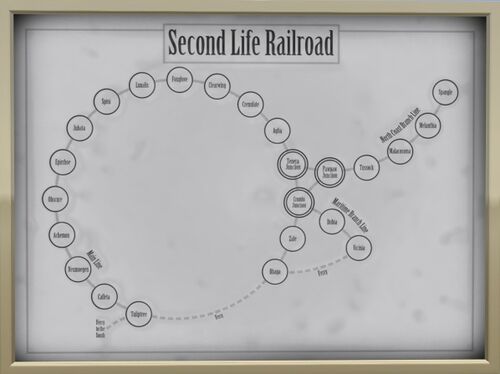 Stations with a number are official Linden Lab SLRR station. Stations marked without a number are publicly accessible Resident build locations along the SLRR related to the rail system. Residents are encouraged to add their own railway station to this public list.