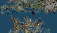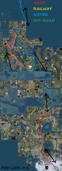 H6 - The Great Wall This pod follows a complex route, including roads, off-road sectors, waterways and of course railways. It is launched in Calleta, like all pods for Heterocera. It flies to the road bus station. After a small break, it moves North along road 1. then, it exits road and enters Heterocera Inner Waters, South to the great bridge. It goes accross the entire delta, on a route close to that used by the VRC ferry. Reaching Baga docks, the pod does not stop. It continues along the coast, to North, reaching in the end Vicina rail terminal. At Vicina, it exits water and becomes a train. From there, it follows the railway (Maritime Line), to Crumbi Junction. It goes a bit South, to Zale, then it returns to Crumbi. From here, the pod moves West, along the main line, to Crenulate and then, along the mountain line, to Paranthrene, close to Pavonia. From here, it turns south, to Pawpaw, then to the Bembecia - Hooktip railway maze, largest rail yard on the grid.